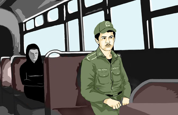 In the quiet of early-morning Tehran, Hamid ambled lethargically to the bus station. His bus arrived soon after he did. The driver waived the fare for him, one of the few advantages that came with wearing a military uniform, and welcomed him warmly onto the bus.